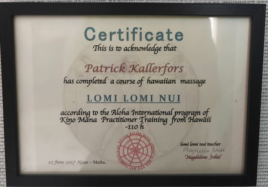 And 2018 I took my Lomi Lomi from advanced practitioner to teachers level to be able to spread the Lomi Lomi and aloha in Sweden.